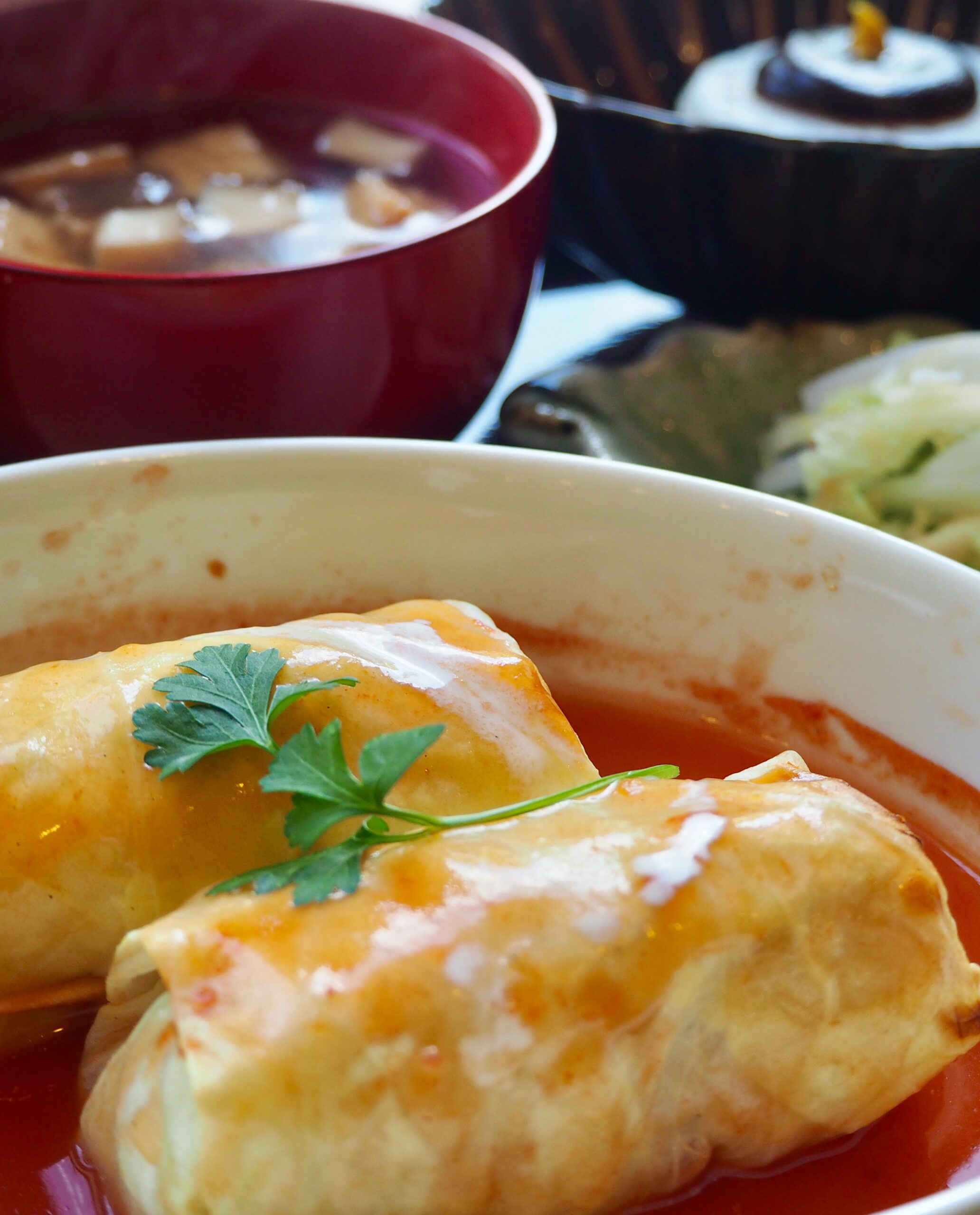 じっくり煮込んだロールキャベツ♡具には豆腐と野菜がたっぷり🎵トマトソースも美味しい冬の定番メニューです⭐︎