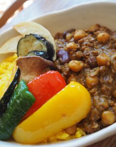 ★気まぐれランチ(¥1,300) ソイミンチとお豆と野菜のSAISHOKUKENBI オリジナルカレー♡ターメリックライスと季節の野菜で彩の良い食欲を唆るメニューです☆